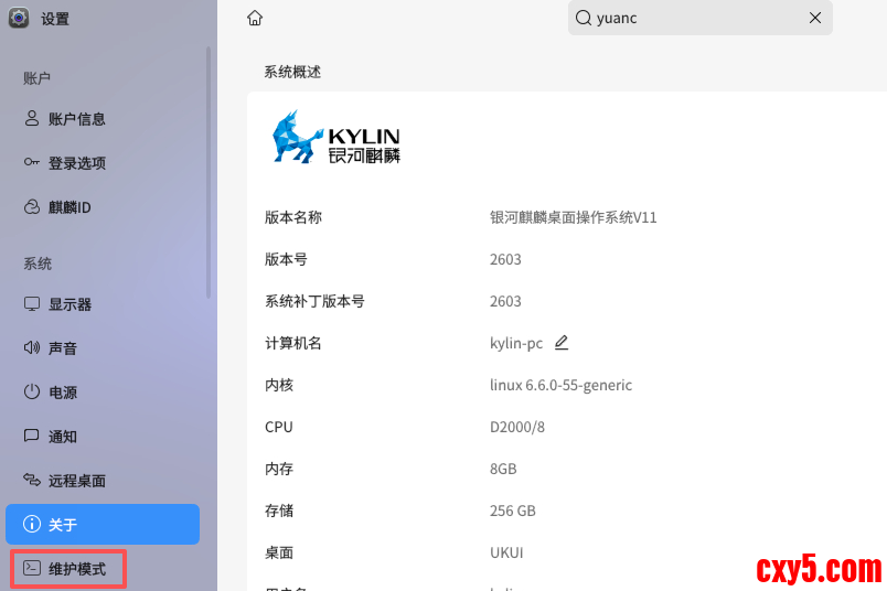 麒麟桌面V11【如何打开维护模式】