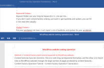 老域名+内容工厂+WP稳定排名 先注册老域名,gname注册符合条件的老域名。 老域名搭建内容工厂,内容工厂指向需要排名的关键字及网站。 压缩包附带:内容工厂程 ...
