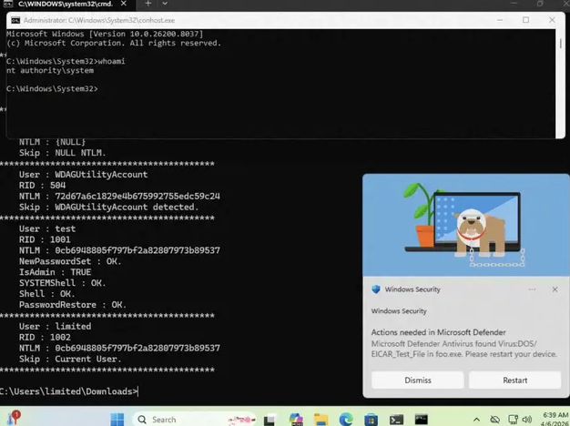 据外媒BleepingComputer报道,近期有研究者Chaotic Eclipse于GitHub公布了微软Windows中一项名为BlueHammer的本地提权零日漏洞,该研究者同时透露,自己早前已私下将漏洞曝光给了微软,然而微软安全响应中心(MSRC)的响应流程“令其过于反感”,因此该研究者最终决定亲自公开披露漏洞细节。 从技术角度来看,BlueHammer主要利用了TOCTOU(检查时与使用时不一致)竞态条件与路径混淆问题组合方案进行攻击,黑客得手后可访问系统中的SAM(Security Account Manager)数据库,从而获取本地账户的密码哈希,并进一步获得系统SYSTEM权限。 不过,研究者同时提到,该漏洞利用难度较高,需要黑客已具备本地访问权限,同时相应漏洞在Windows Server等环境中可能无法稳定运行。 对此,微软回应称“公司始终致力于调查已报告的安全问题,并将尽快发布更新以保护用户”。同时,微软也重申其“协调漏洞披露”(Coordinated Vulnerability Disclosure)机制,以确保旗下产品漏洞在公开前就能得到充分修复,从而保护用户安全。 |