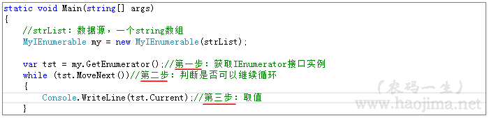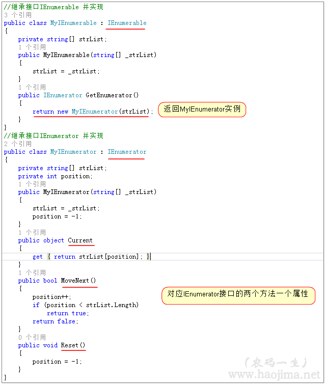 我们先思考几个问题: [*]为什么在foreach中不能修改item的值? [*]要实现foreach需要满足什么条件? [*]为什么Linq to Object中要返回IEnumerable? 接下来,先开始我们的正文。 自己实现迭代器 .net中迭代器是通过IEnumerable和IEnume ...