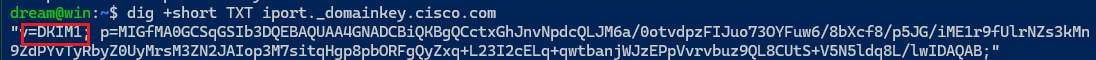 1. dig +short TXT iport._domainkey.cisco.com