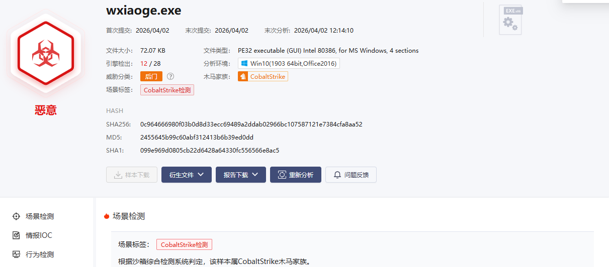 带附件的钓鱼邮件,优先上传沙箱分析,确认是否为恶意程序、属于什么木马家族、是否有后续外联和持久化动作。