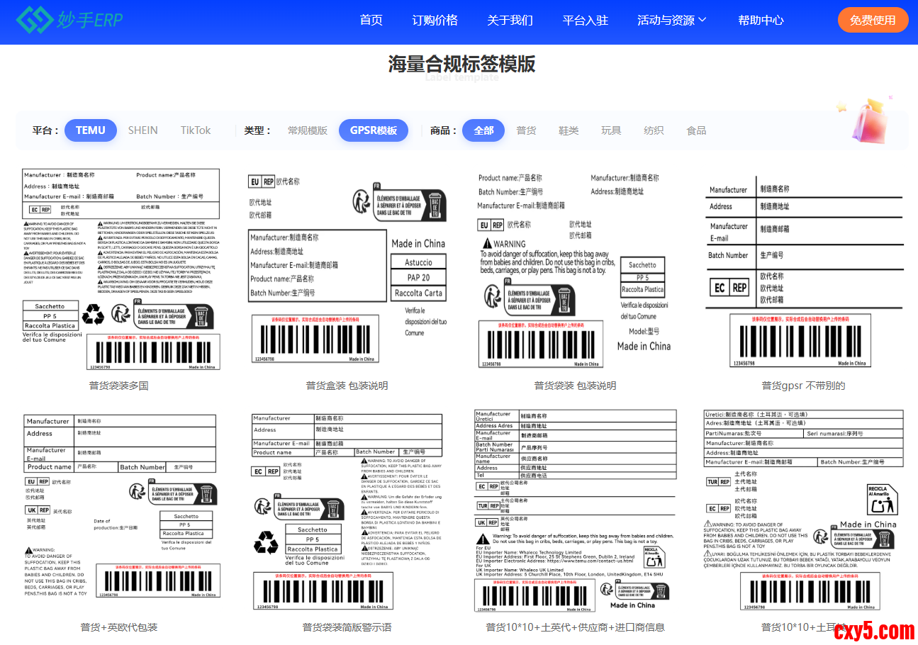 Temu合规标签模板制作要求有哪些?要怎么制作? 建议还是要使用跨境合规标签工具来制作,推荐妙手ERP,它上面有100+合规标签模板,无论是常规模板还是gpsr模板都 ...